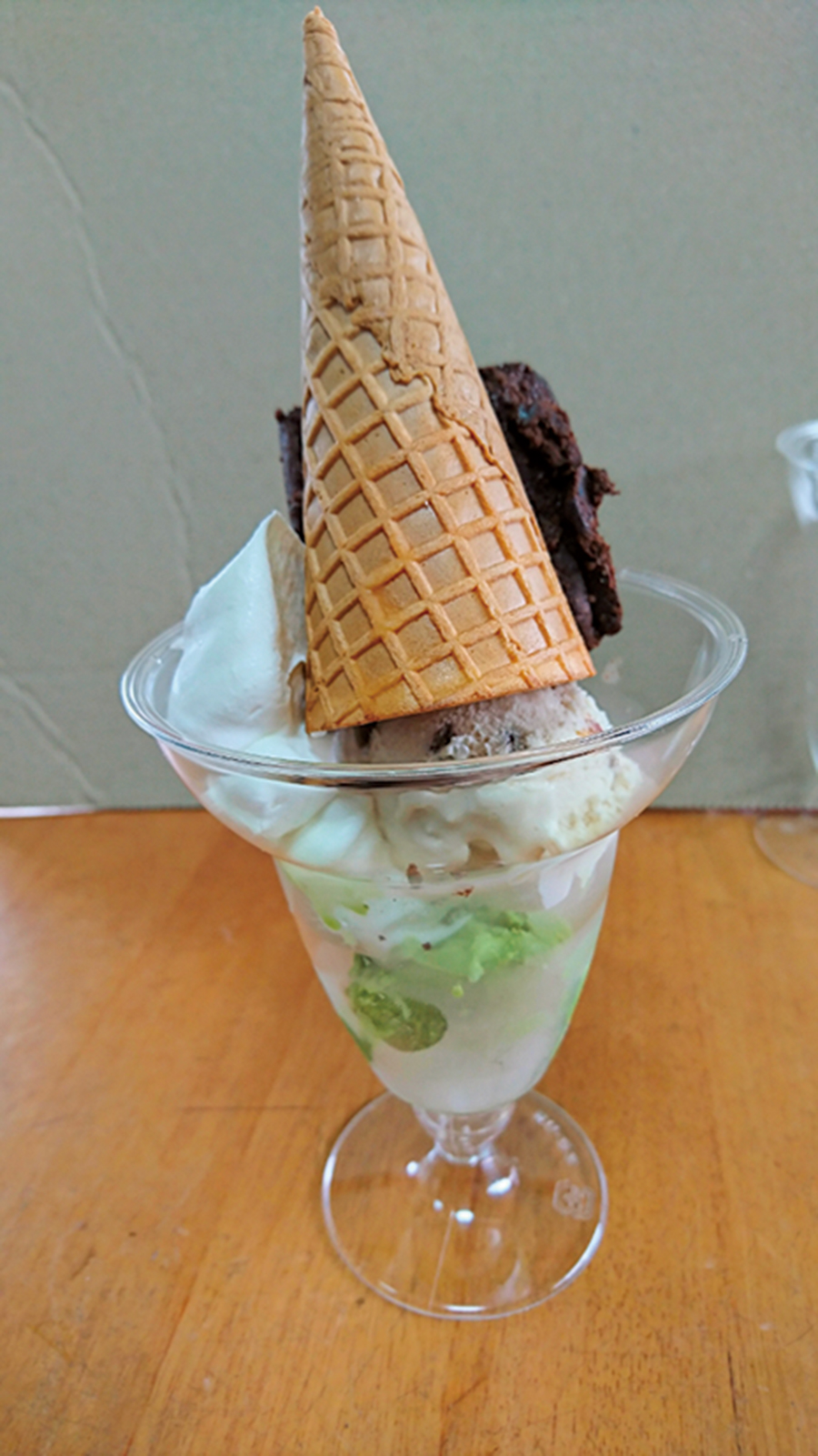 2020年9月、山をモチーフにしたパフェ店をパティシエの脇久雄さんが松本にオープンする。天を衝くワッフルコーンが印象的な「槍ヶ岳」(Sサイズ¥500)は、槍沢の雪渓を生クリームで表現するなどリアル感も追求。下山後に立ち寄ってみたい。