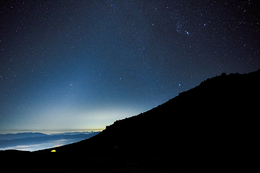夜中、テントから出ると頭上には満天の星空が広がっていた。急にこんなサプライズプレゼントを食らったらだれだってメロリンQである。