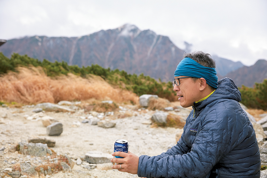 山にいる喜びを感じながらビールをグイッ。山頂に行けなくてもこれに勝る達成感はなし。