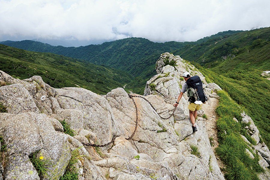 飯豊連峰は山の奥の奥にある。関東からなら移動日を前後1日ずつ確保しておくのが無難だろう。山中2泊3日で歩くとすれば、この縦走がおすすめだ。飯豊の魅力が全部詰まっている。withコロナ登山の移動は、自家用車で行きたいところ。下山後の温泉を目当てに飯豊温泉登山口の駐車場に止め、歩き出す。当初は2日目に本山小屋で野営し、3日目にダイグラ尾根を下るつもりでいた。そうすれば下山口も飯豊温泉になってスムーズに帰路につける。しかし、ダイグラ尾根は破線ルートの険しく長い山道。このご時世、無理は禁物で紹介するわけにはいかない。そこで、大日杉小屋まで足を延ばした。切合小屋のテント場は広くて気持ちよく、地蔵岳へ続く尾根のダケカンバたるや史上最高に美しく、御田の大杉も神秘的だ。