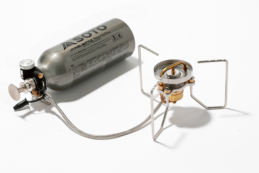 使う前にプレヒート(予熱作業)が必要だが、冬季を中心につねに安定した火力が得られるのがガソリンバーナー。燃料も安価で、残量もひと目でわかる。