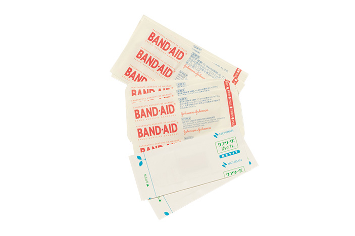 簡単な切り傷、擦り傷に使用。さまざまなサイズがあると便利。傷口は洗浄してから使う。