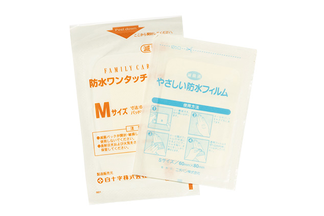 傷口の雑菌や濡れを防ぐための保護フィルム。患部の洗浄、止血後ガーゼを乗せてから使用。