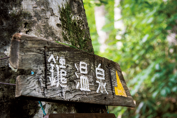 「鑓温泉」の看板が目に入る。この先の温泉地に期待が高まる。