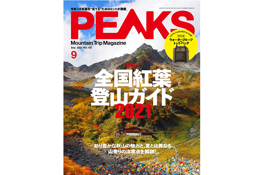 8月12日発売の『PEAKS』9月号。特集は「全国紅葉登山ガイド2021」