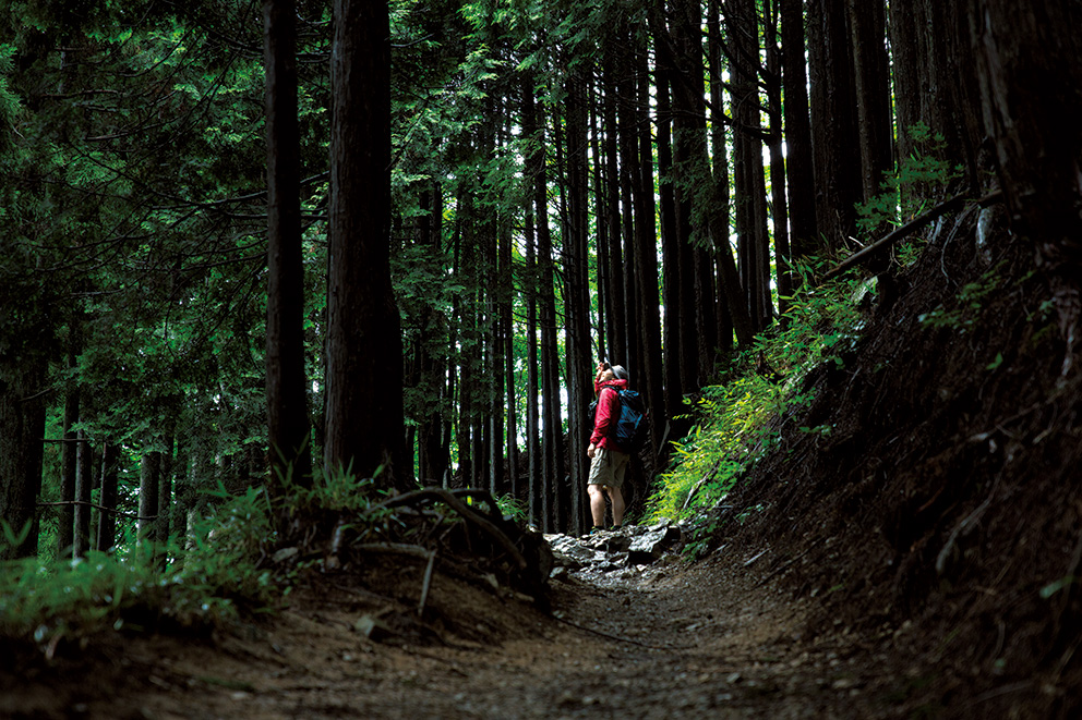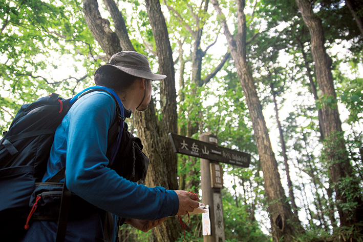 大岳山からの展望を楽しんだあとは、歩いてきた道を引き返して、鍋割山を経由した尾根道へと向かった。分岐点に到着するたびに、地図と道標を見て正しい道を確認する。このように僕は最後まで安心せず、いくら急いでいたとしても分岐点で進む方向をつねに確認することを習慣にしている。これが道迷いを防ぐためにもっとも有効だと思っているからだ。また、途中で登山道が不明瞭になったときは迷わず引き返して、明瞭な道を探す。経験上、日本の一般登山道はどこでも明らかな踏み跡がある。倒木などを迂回するためわかりにくいところもあるけれど、踏み跡が薄くなったらほかの道があるはずだ。