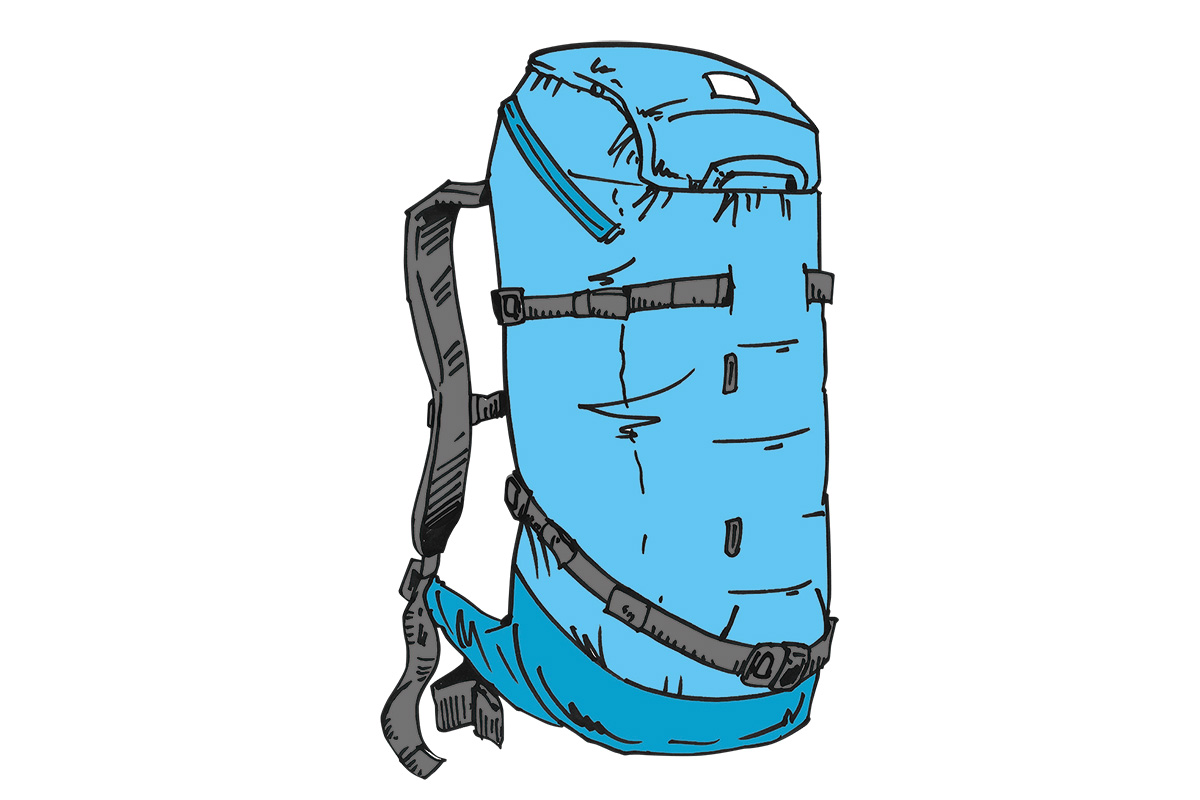 ロープバッグを別に持ち、ハーネスなどのギアや防寒着などを入れるだけなので容量は20ℓ以下でOK。背負って登る場合もあるので、外側はできるだけ凹凸のない、シンプルなデザインのものがいい。ヒップベルトにギアラックのついたものはアタックザックに最適だ。コンパクトで体にフィットするものを選ぼう。