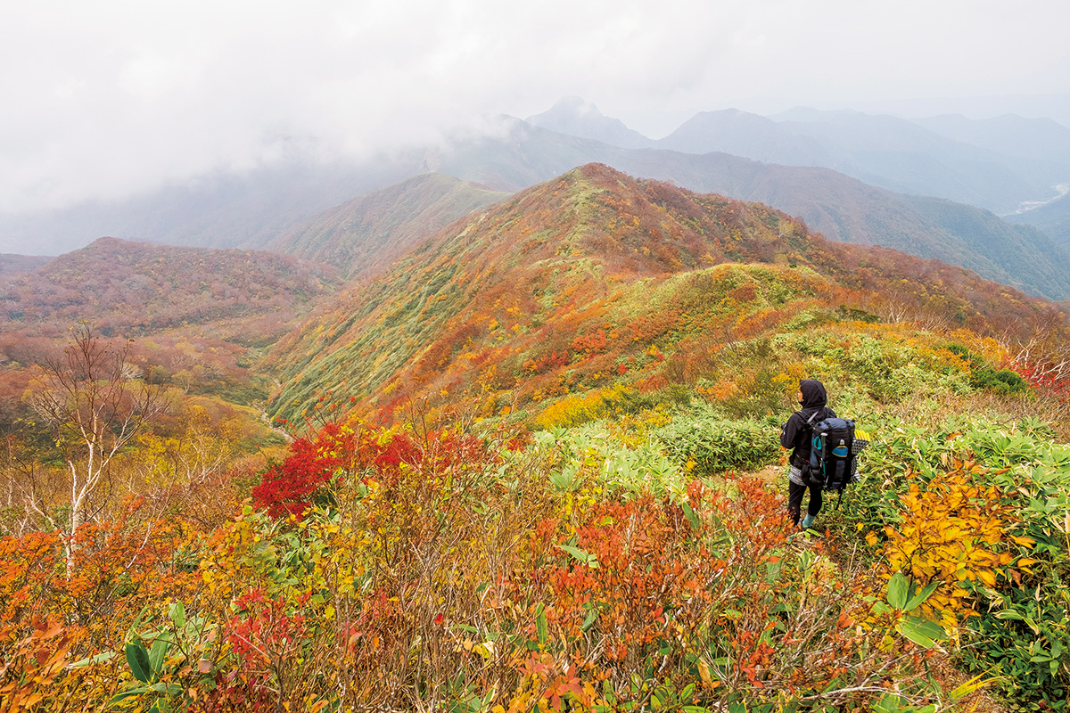 モザイクのように色づく山肌の紅葉が美しい谷川岳は、関東圏からアクセスしやすい身近な紅葉スポット。このエリアは標高以上の高度感を味わえるのも魅力だ。手軽にロープウェイを使って谷川岳をピストンしても楽しめるが、個人的には馬蹄形縦走でじっくり味わうのが好み。おすすめは反時計回り。白毛門あたりからの谷川岳方面の展望がすばらしい。朝日岳までは長い道のりだが、ピークには天国のような草原が広がっている。蓬ヒュッテに宿泊し、翌日は稜線をたどり盟主の谷川岳へ。最後は急登の西黒尾根を下り、土合駅へと戻る。