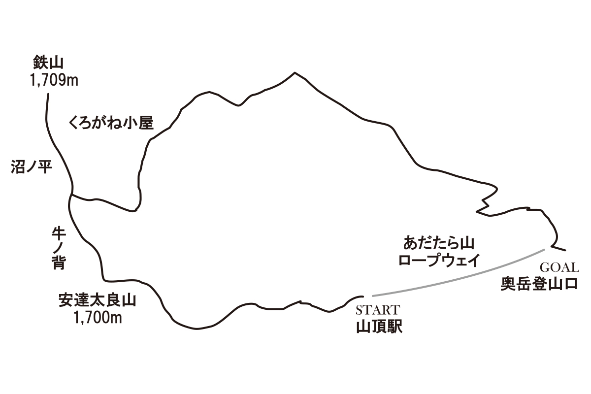歩行時間は5時間。日帰りでも十分楽しめるが、あえて泊まることで魅力が増すのが安達太良山。見どころは大きくふたつ。安達太良山体を埋め尽くす紅葉と鉄山直下にある爆裂火口・沼ノ平の景観である。もっともお手軽に楽しむプランは、あだたら山ロープウェイで往復すること。時間のない人にとくにおすすめだ。せっかくの遠出、ゆっくり楽しみたいのであれば、くろがね小屋に宿泊するのがおすすめ。ランプの宿でゆったりと湯に浸かり、派手さはないけれど滋味あふれるカレーを味わえば、山旅の思い出に彩りを添えることができるだろう。