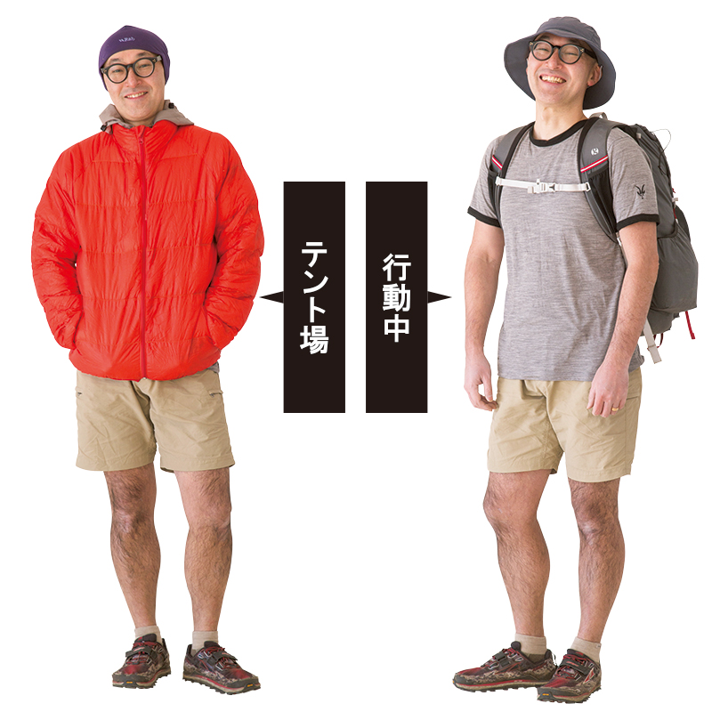 装備は土屋さんらしく、驚くほど軽量でコンパクト。いずれのアイテムも実際に使ってみて厳選されたものばかりだ。背負う負担が減れば、トレイルランニングシューズで軽快に歩けるというメリットも。
