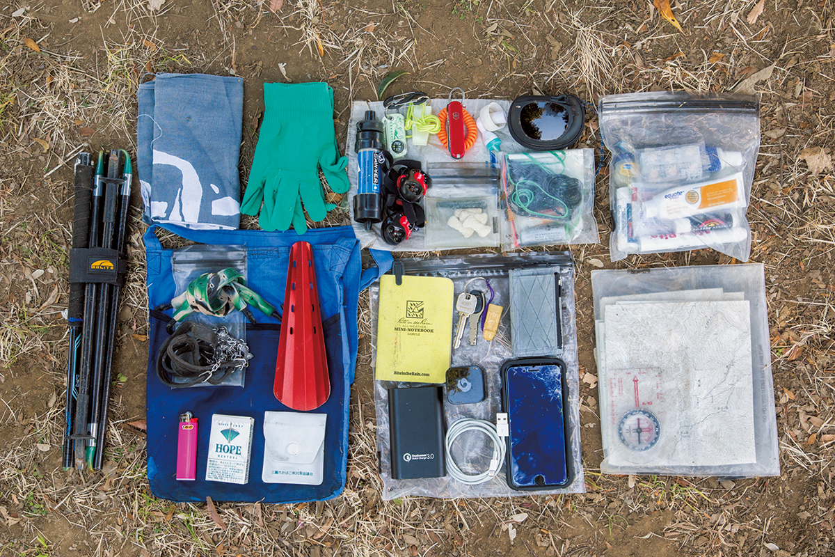 - リペアキット。針と糸、安全ピン、ダクトテープなどを持っていれば応急処置ができる。