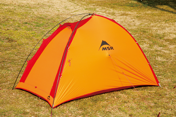 • テントはMSRのアドバンスプロ2。荷物を置く場所などを確保するため、余裕をもって2人用だが、シングルウォールで軽量。