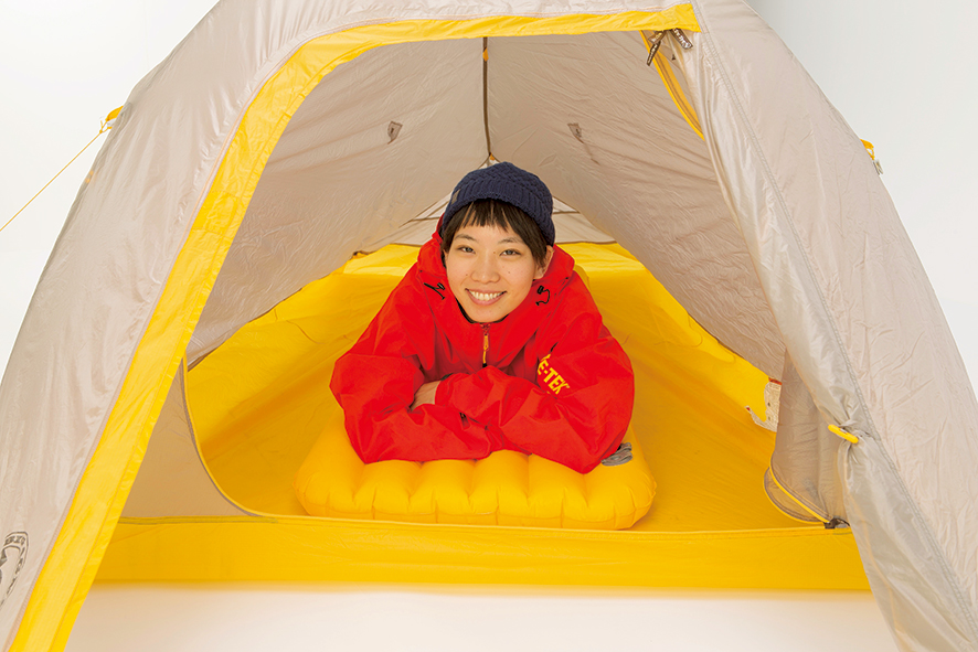 「1人用」として販売されているテントのフロアは、2m ×1m 前後が標準的。横幅1mあれば十分余裕はあり、実際には80㎝くらいでも無理なく寝ることは可能なうえ、物を置いておくスペースもとれる。軽量化を追求するなら、横幅80㎝前後のものが狙い目だ。注意したいのはフロア面積以外の部分。今回、いくつかのテントに実際に入ってみてあらためて感じたのだが、テントの有効空間というのは、フロア面積が同等でも、ものによって大きく異なる。