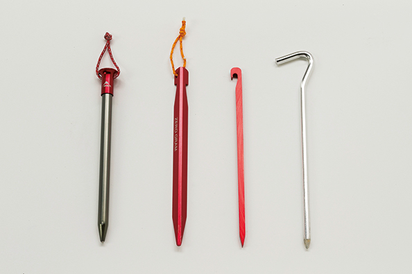 一般的なテントだとあまり気にならないが、超軽量テントとなると、張り綱やペグの重さが意外とバカにならない。テント本体がいかに軽くても、重めの張り綱やペグが付属していると、トータルではそれなりの重さになってしまうのだ。