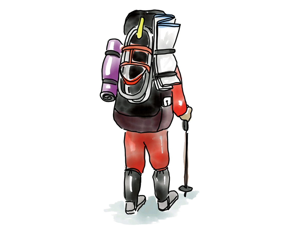行動時間が延びたり装備が多くなることにより、体力的に厳しいこともある。無雪期の間に、雪山で想定される装備やそれ相当の重量を背負ってみて、トレーニングをしてもよいだろう。軽量化は重要だが、必要な装備となにかあった際の最低限必要な非常用装備の携帯も必携。