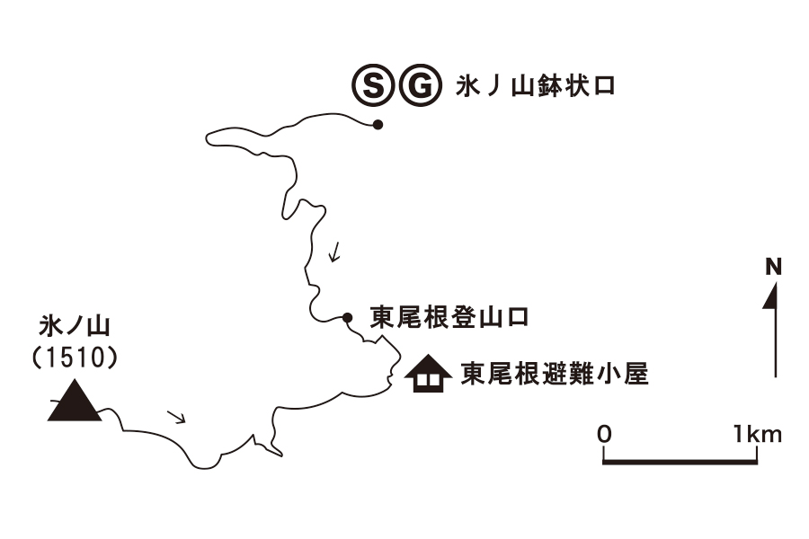 兵庫県の最高峰として有名な氷ノ山。標高は1,510mだが麓にはスキー場もあり、冬はかなり雪深い山となる。行程はまず、氷ノ山鉢伏口でバスを降りたら氷ノ山国際スキー場のゲレンデの脇を歩き、東尾根登山口へ向かう。ここから東尾根避難小屋までの区間がこのルートの最難関。雪深い急登となる。たどり着いた避難小屋で一泊しよう。翌日、必要な荷物を持ち、わかんやスノーシューの機動力を最大限に活かして山頂へ。分岐で北西へ向かうと、氷ノ山はまもなくだ。ピークからは日本海や、鳥取県の盟主・伯耆大山も確認できる。広大な景色を楽しんだら往路を戻ろう。