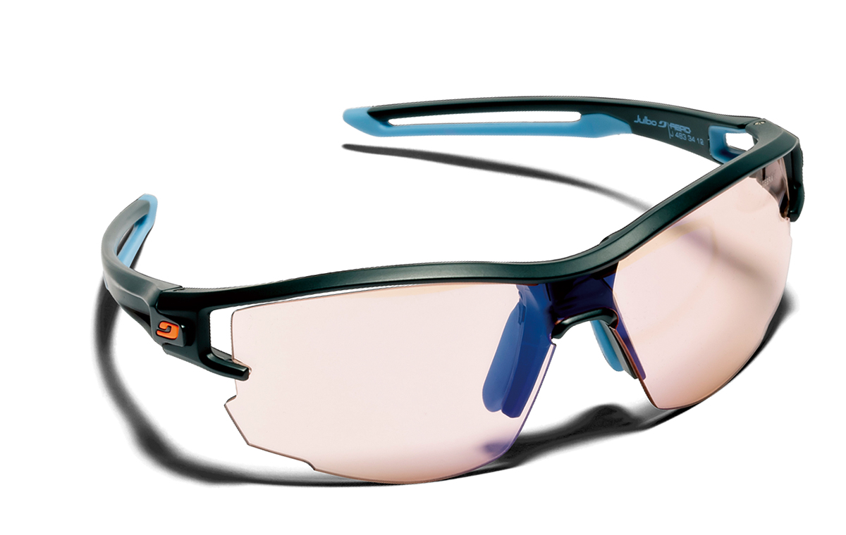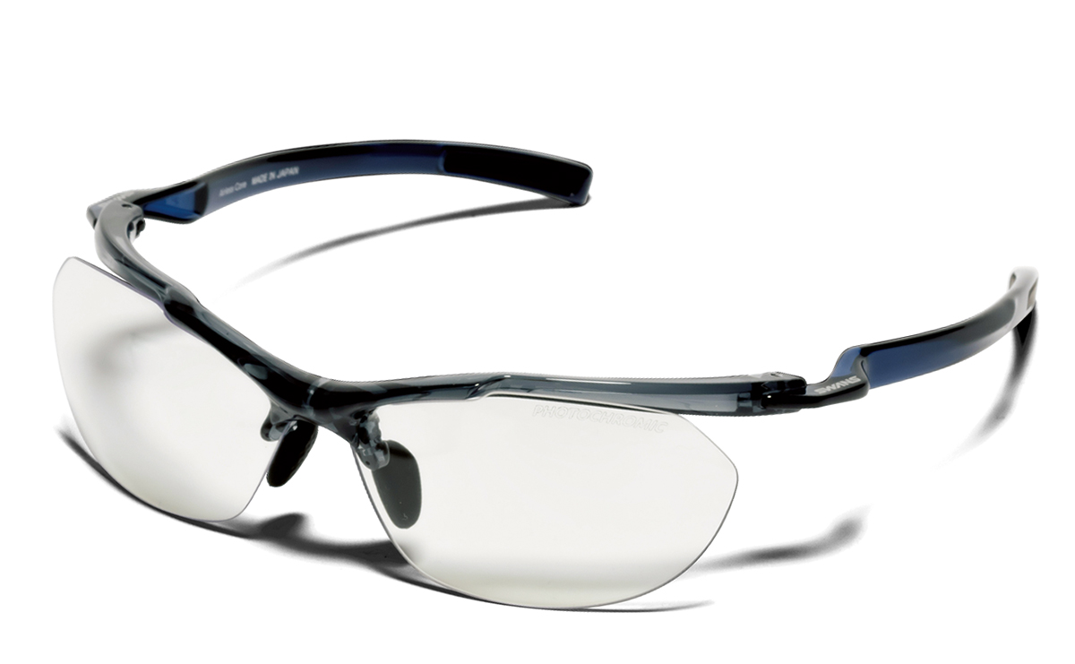 まるで宙に浮いたようにフレームに装着されたレンズデザインによって、激しい運動時にもたしかなベンチレーション機能を促す。定評ある調光レンズは、可視光線透過率72〜13%に変化する。