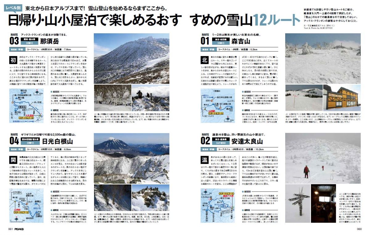 これから雪山に登りたい人にピッタリの12ルート。