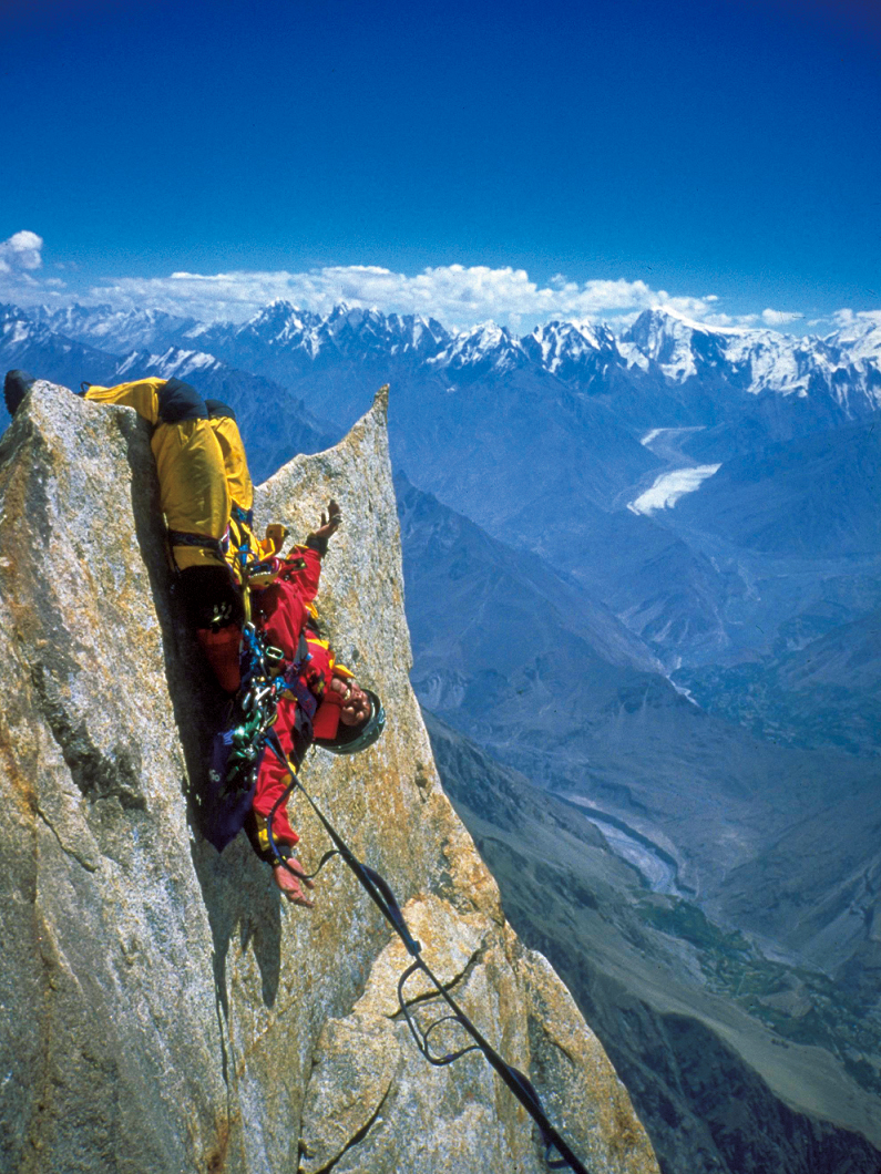 パキスタンにある岩峰ブブリモティン(5,985m)南壁初登。山頂で記念撮影(1995年)。
