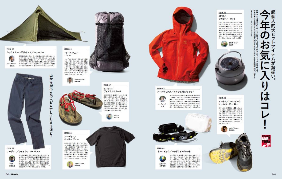 PEAKSギア・オブ・ザ・イヤー号。今年も2021年に発表されたギアを徹底調査し、さまざまな角度から意見を集めながら、秀逸なギアをより集めてご紹介します。