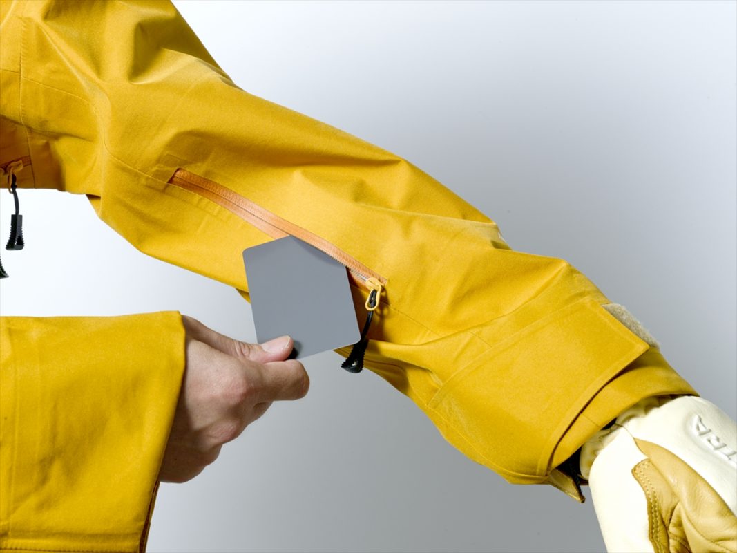 そんな河野が選んだのが「パウダーガイドジャケット&パンツ」である。素材はリサイクルポリエステルを使った3レイヤーのゴアテックス。絞り込むことなく、かといってルーズでもないスタンダードフィットは、ハイクでもランでも体にストレスを与えず、最適な立体裁断がそれを後押ししてくれる。また、ファスナーの開け閉めや、ポケットの大きさや位置、袖口、フードの作りといったディテールの精度も高い。