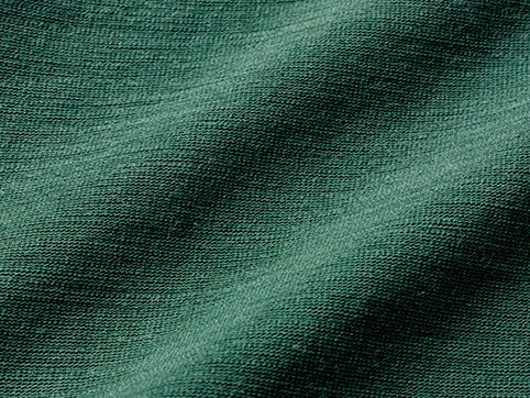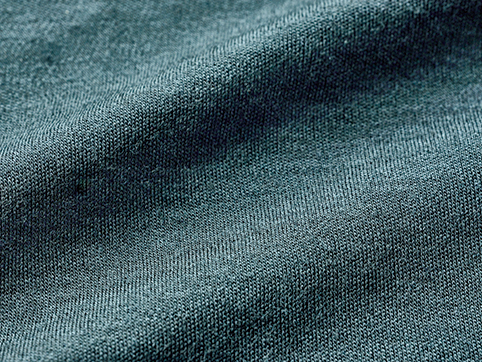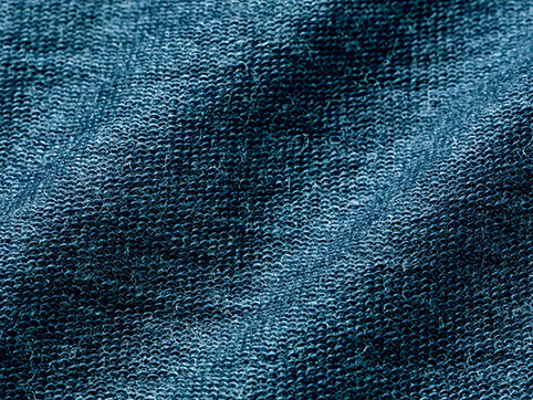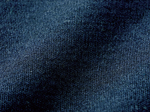 ウールが持つ調湿機能の要ともいえる、繊維の表面にあるスケールを最大限残す方法で防縮加工を行なうことで、ウール本来の機能を引き出した期待の新作。厚みのある生地で保温性も高く、なめらかな肌触りも魅力的。