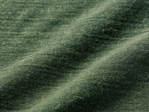 ウール繊維の長さと太さを統一し、基準に満たないものを排除するコンパクトスパン技術で撚られる糸を使用。従来のメリノウールより25%以上も耐久性が高く、目の細かい上質な生地は毛羽立ちが少なく肌触りもいい。