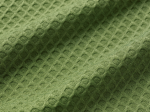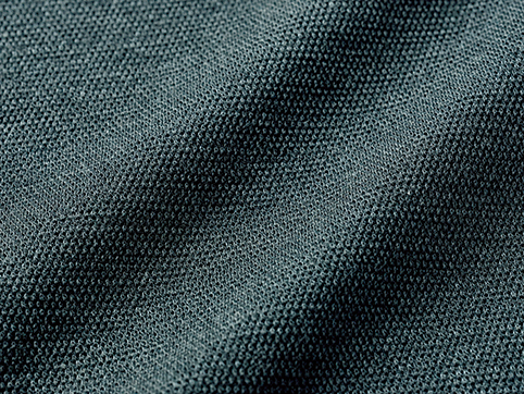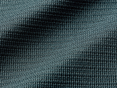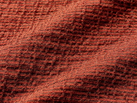 肌面にある凹凸が体温を閉じ込め、さらに表面と肌面のウール生地をナイロンの柱で支える独自の構造によって、空気の層で高い保温性が持続。吸水拡散性に優れる繊維を肌面にプラスして、速乾性も備えている。