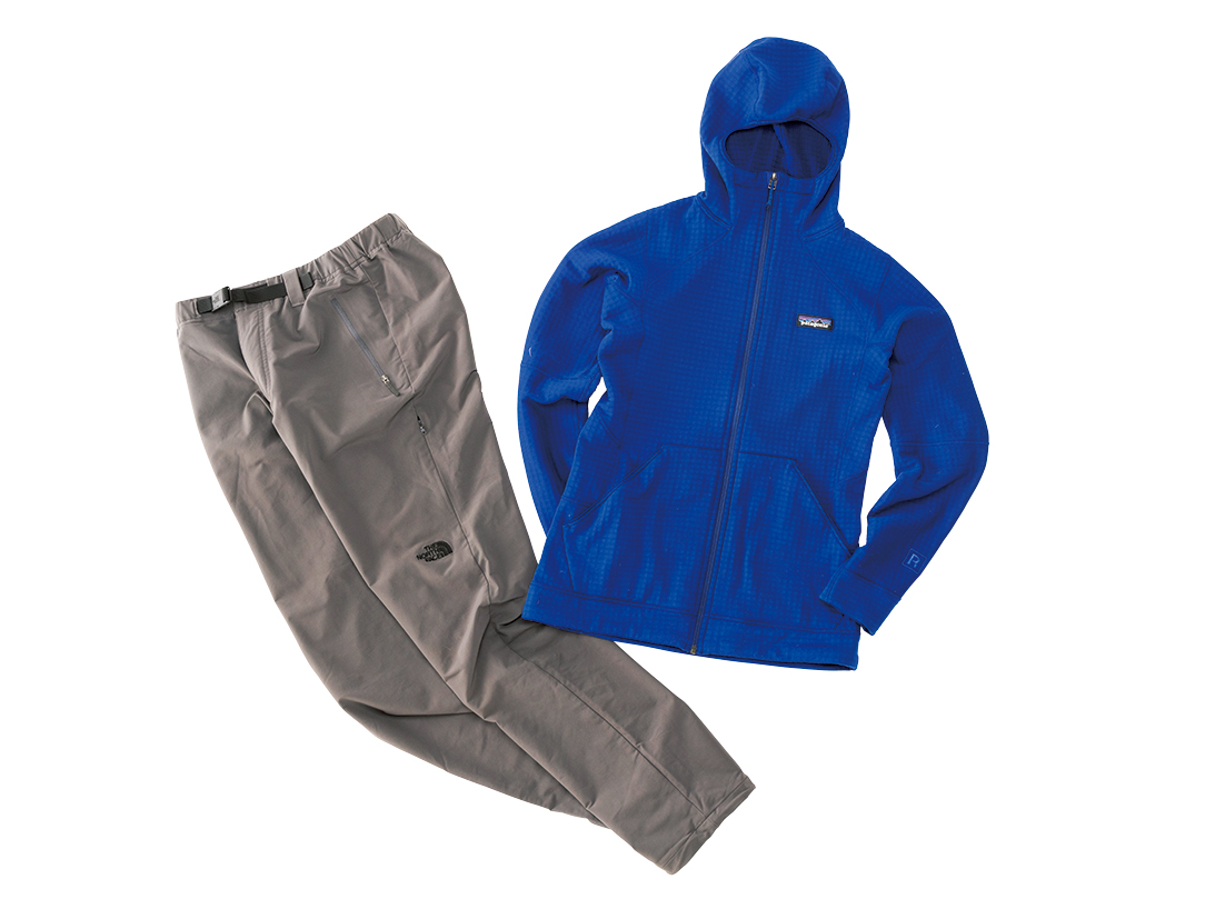 保温性とドライをつねに保たせるウエアリングが重要。クランポンなどのギアが引っかからないように、腰から下がスリムになるように選ぼう。
