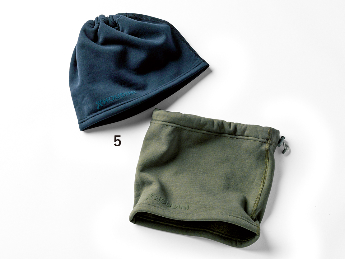 ビーニー、ヘッドバンド、ネックウォーマーになる、上部にドローコードが配された多機能のフリースチューブ。生地は伸縮性と保温性に長けたポーラテック・パワーストレッチ・プロ。冬の登山の定番装備にしたい。