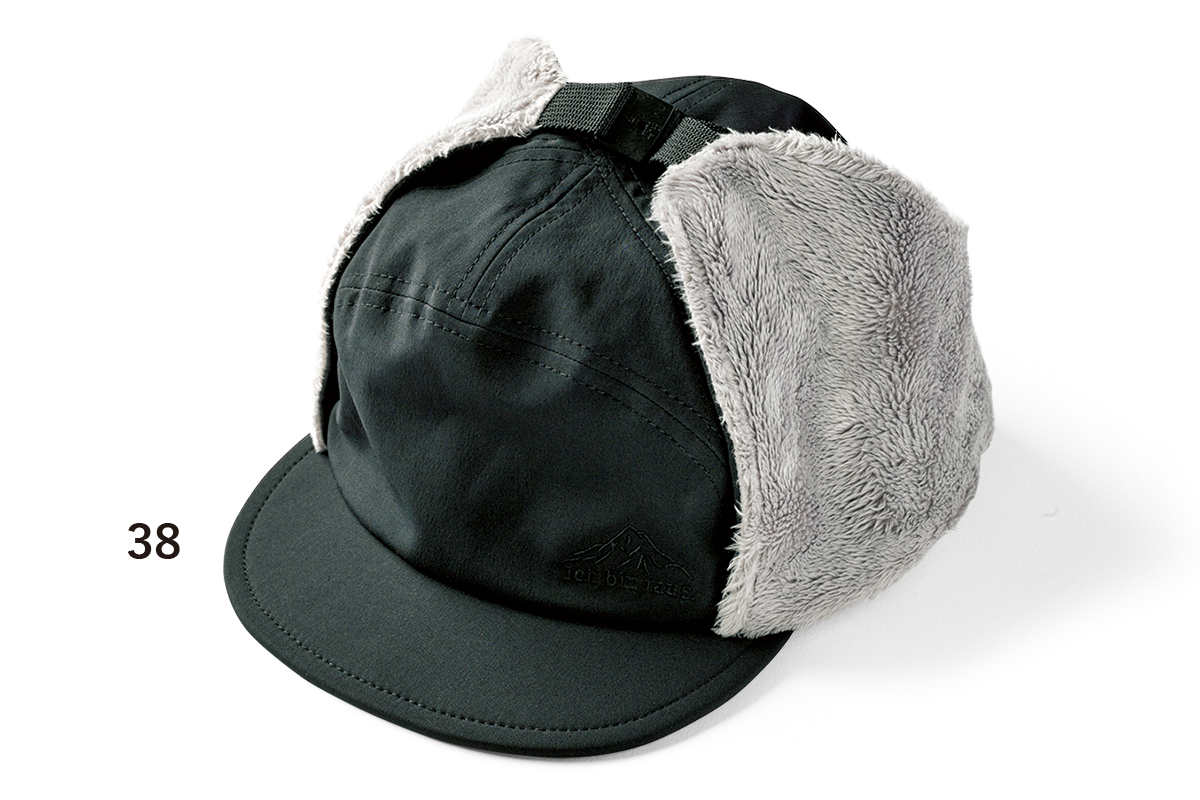 サッポロの名を冠されたとおり、しっかり防寒してくれるキャップ。ツバは短めだがしっかりとした厚さ。目立つ耳当ては、裏地に毛足の長いボアが備わり、あご下で留められる。街でも山でも似合うデザインだ。