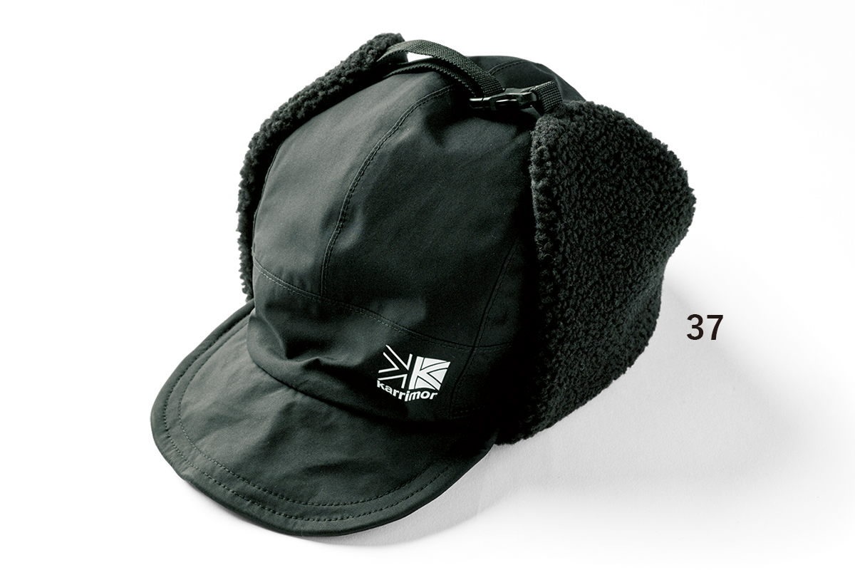 耳当てを下ろすと、首の後ろ部分まで頭部をすっぽりと厚手のフリース裏地が包み込んでくれる。その保温性は、今回紹介するヘッドウエアのなかでも随一。表地には防水透湿素材を採用。雪山がよく似合う。