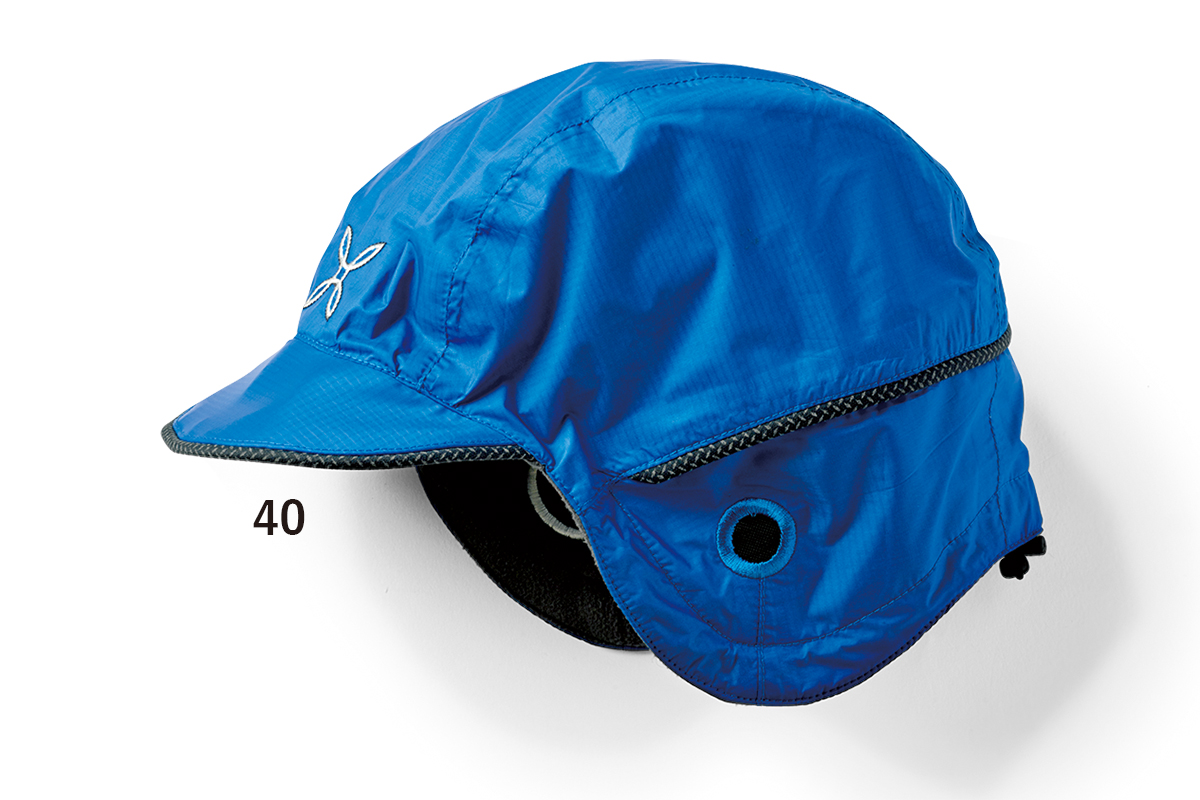 レンジャー、つまり森林警備隊と名付けられた帽子は、防風、防水、透湿性にすぐれた素材を使用。フリース裏地の保温性に加えて、風雪をしっかり抑制する。耳部はメッシュ、後頭部はサイズ調節のコードを備える。