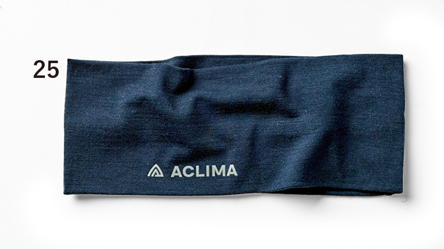 冬の雪山用というと分厚い生地を想像しがちだが、よく晴れて無風の冬山は案外暖かい。だからこんな薄手のヘッドバンドで熱を逃しながら、頭部を温めることも必要。寒くなったらビーニーをプラスしよう!