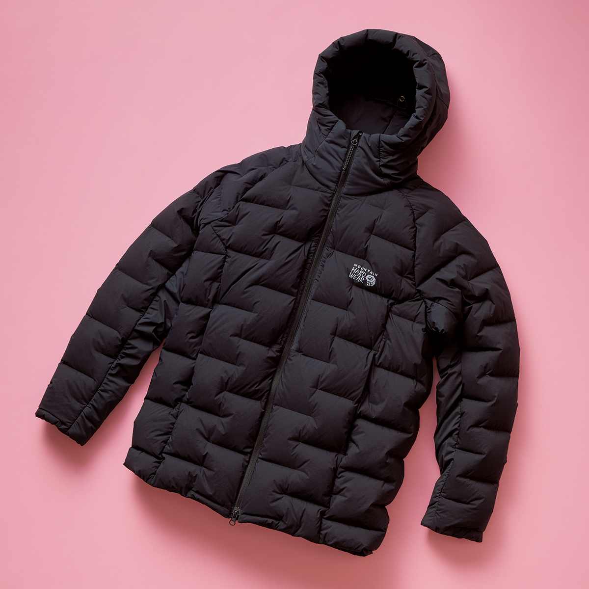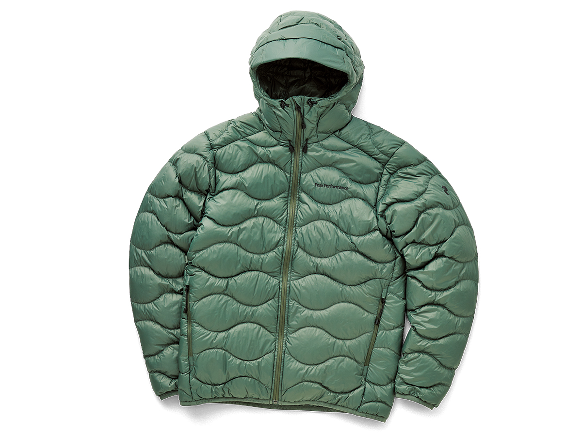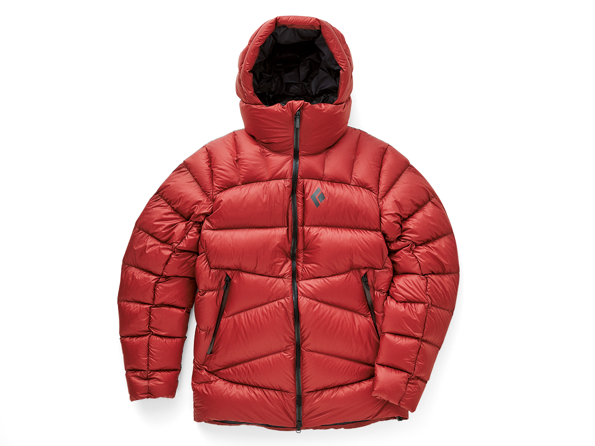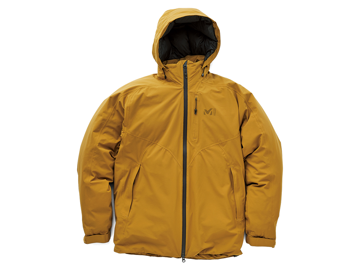 厳冬期や標高が高い山で雨が降らないという前提なら、同じ保温性でも化繊より軽量でコンパクトに収納できるダウンが有利だ。アウターはジャケットの上に羽織れるものが実戦的。綿入りのフードや立体的なバッフルなど、保温性重視のモデルを選びたい。防水性の高いシェルや撥水ダウンを採用していれば、より安心感が高くなる。