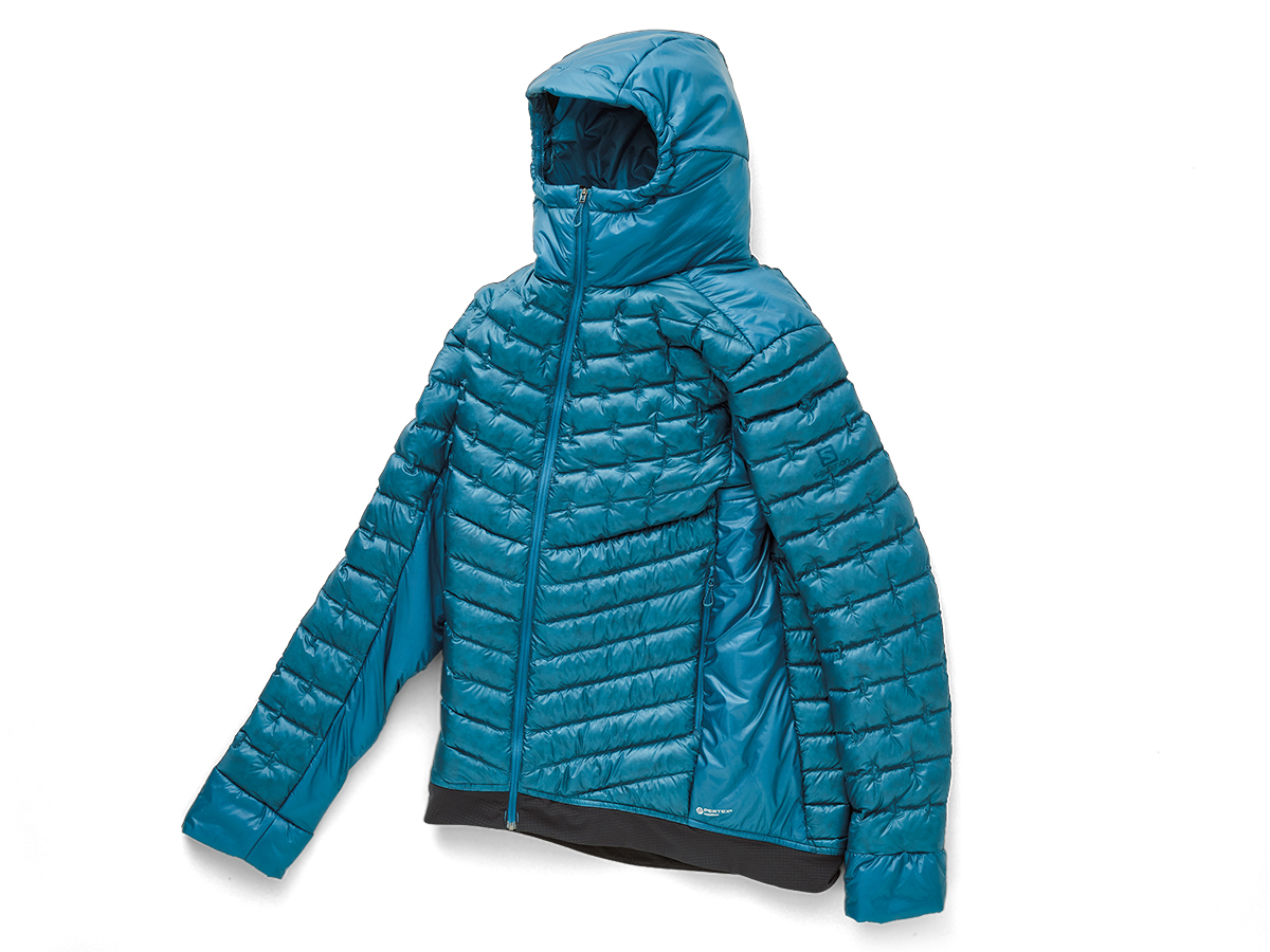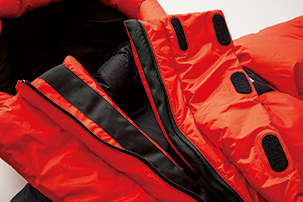 細部までていねいに作り込んだ高所向けのモデル。中綿は、徹底的に洗浄した900FPのダウンに人体が発する熱を輻射する「光電子」をミックス。シェルはゴアテックス・インフィニアムで濡れにも強い。