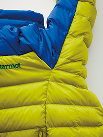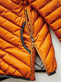 表と裏で縫い目をずらした二層構造のバッフルを採用。コールドスポットをなくし、さらに内部の仕切りで体の熱を反射して保温性を高めている。シェルには独自の耐風・撥水素材を使い、プロテクション性も高い。