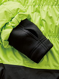 手首にぴったりフィットするサムホール付きインナーカフで袖口からの冷気の侵入を防ぐ。