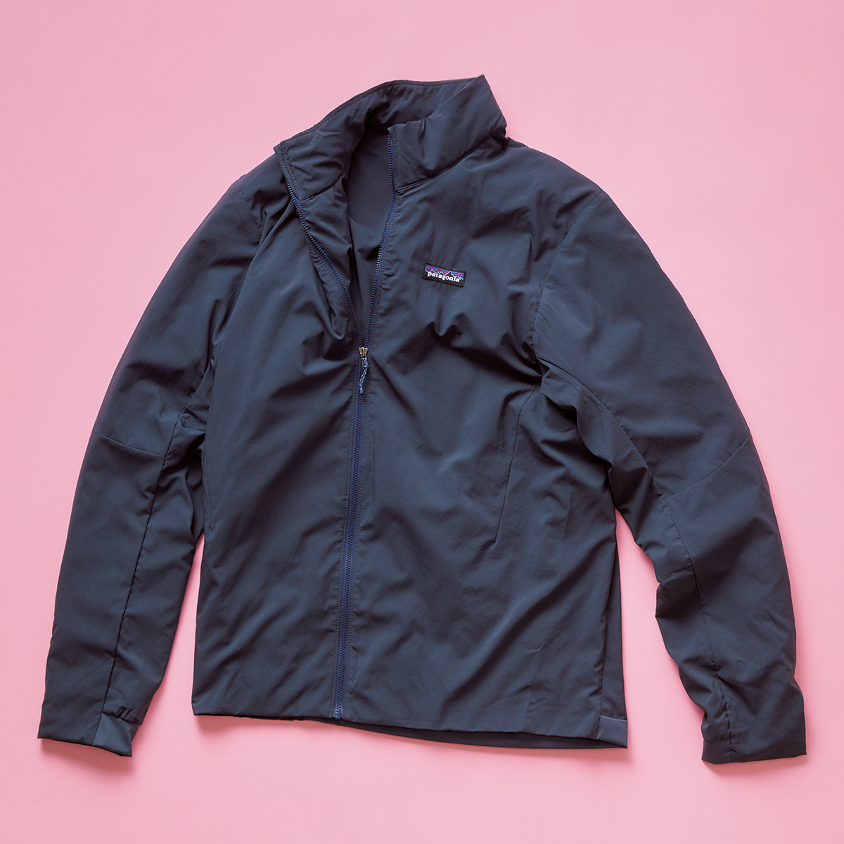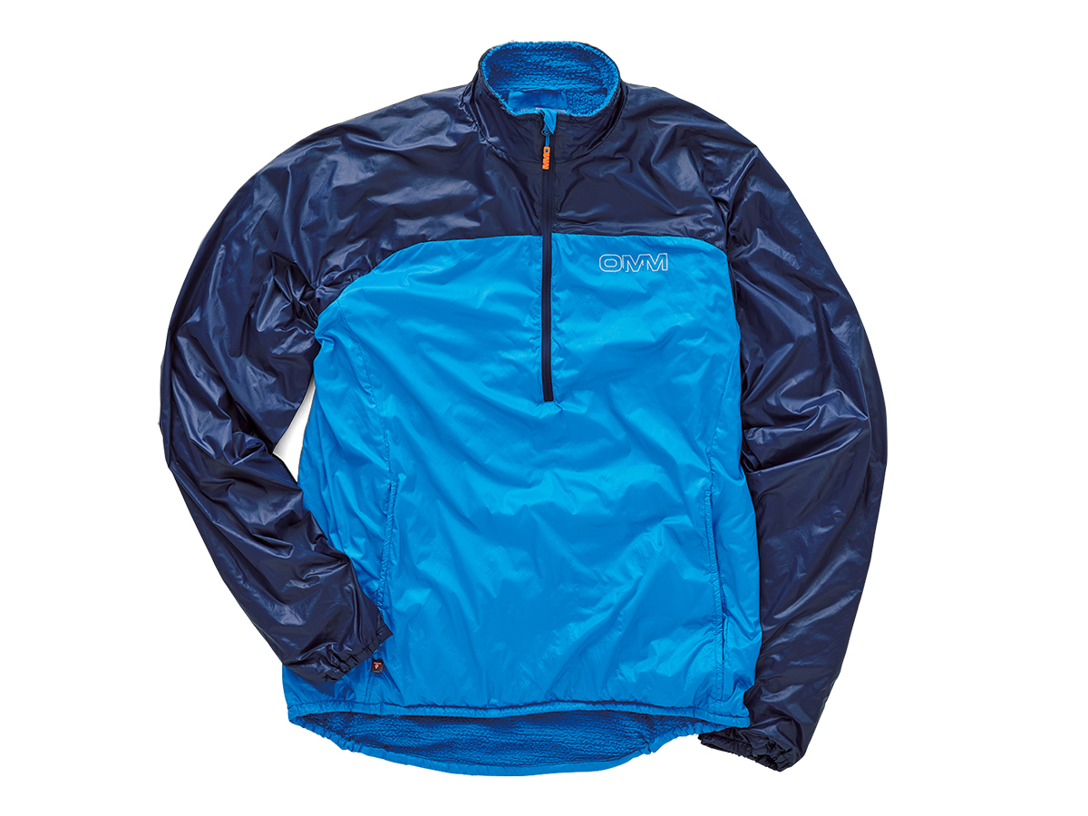 ウインドシェル並みの軽さながら、裏地にはプリマロフトを織り込んであり絶妙な暖かさ。温度調整がしやすい長めのファスナーを備え、真冬のトレランのような、寒冷下の運動量の多いアクティビティにピタリとはまる。
