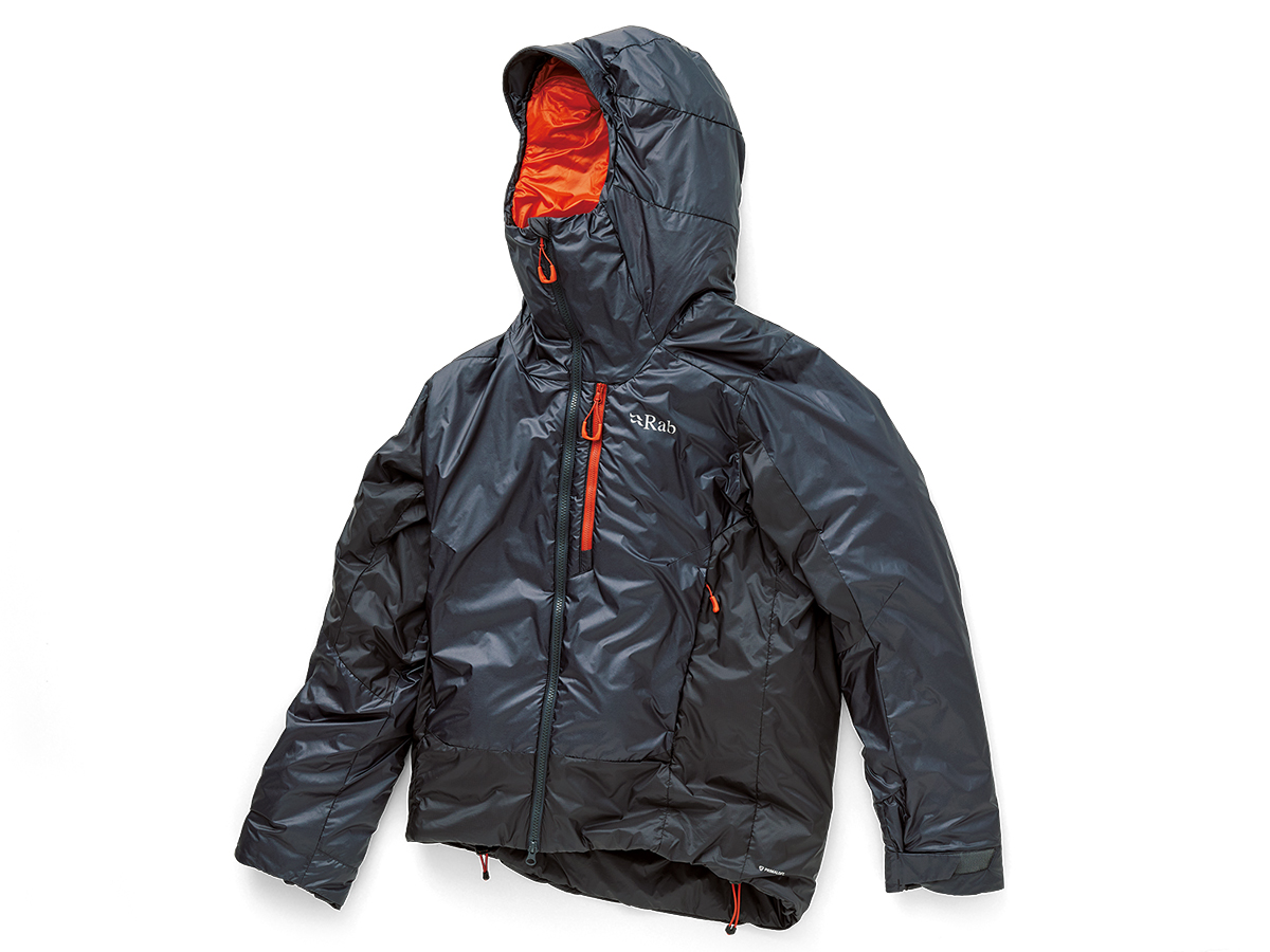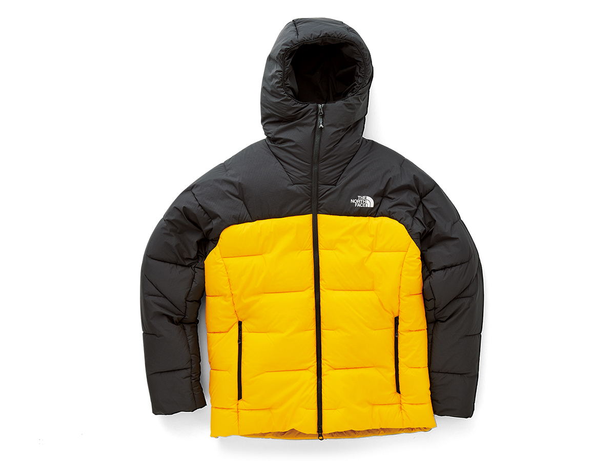 ボリュームの異なる中綿を使い、シビアな環境でも保温性を維持できるよう開発したモデル。身ごろや肩、上腕は2層の綿で保温性を向上。ヘルメットと重なるフードや熱がこもりやすい両脇には薄目の綿を使っている。
