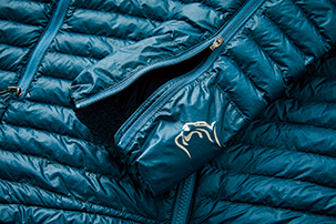 冬のクライミングやボルダリングなど、携行性よりも保温性を重視する場面に向けて開発。中綿は蛇腹状で、軽量ながら空気を多く含み伸縮性に富む。この中綿とシェルの伸縮性を妨げないようステッチも工夫している。