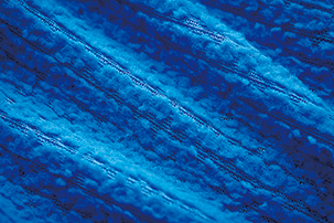 オクタは中空で8本の突起を持つ繊維。少ない質量でも空気を多く含むため、軽く暖かい。