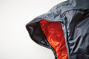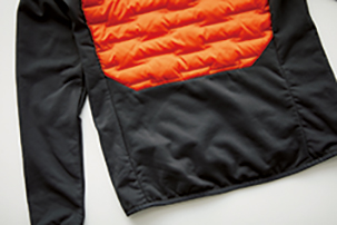 イタリア・サーモア社の中綿を体幹部分に使用。袖と体の側面、腰部分はフリース素材。