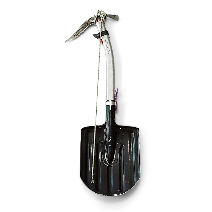 ピッケルを柄にして使うタイプのもの。テント設営の整地、除雪、雪洞堀り、深すぎるときのラッセルにと、毎日使用。