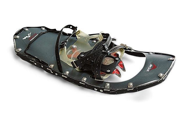 保温性重視で厳冬期用二重靴を選択。ネオプレーンソックスのおかげで、靴の内部が濡れることはほとんどなかった。出発前にコンロの火で温めた。