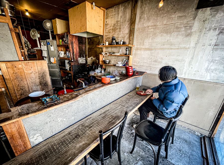 下駄屋の建物をリノベーションしたそうだが、ほとんど手を加えてないと言っていいだろう。その証拠に、入口の引き戸が引っかかり、なかなか入れない。それを見ていたマスターが中から開けるのを手伝ってくれた。「ちょっとこつがいるんですよ」と一言。