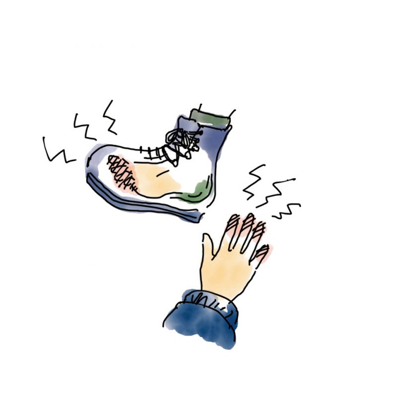 足先は防寒性能のよい冬用の登山靴と靴下で対応するが、靴下を必要以上に重ね履きしたり小さいサイズの靴で足を締め付けない(血行を悪くしない)ことも重要。
