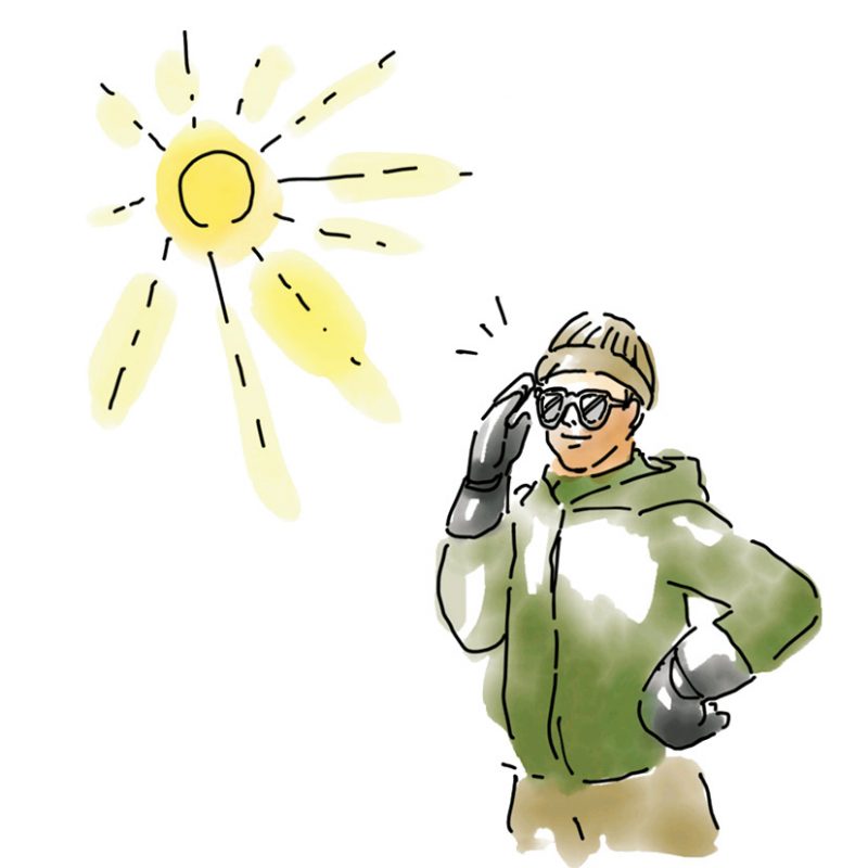 予防はその紫外線をカットするサングラスやゴーグルを装着すること。曇りのときも注意。