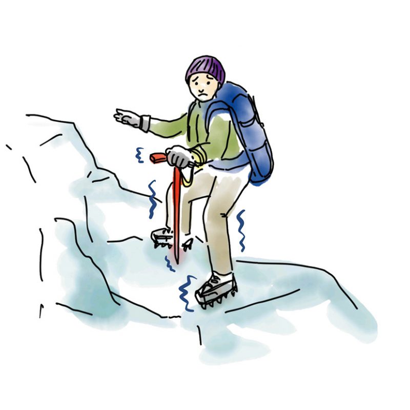 さまざまな気象条件、積雪の質、傾斜の角度、進行方向などに対応したクランポン歩行の訓練・講習などを、滑落の危険がある雪山に行く前に経験しておくと良い。