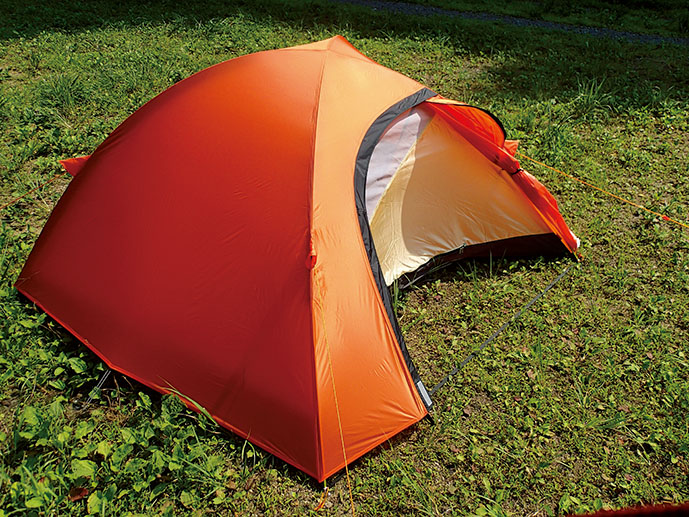 寝床と少しの荷置きスペースで十分と考える山岳用テントを、キャンプに転用。前述のとおり本企画ではふたり対応のテントを中心としているが、それでも圧倒的に軽いのがその魅力だ。バックパッキングスタイルでは最有力の選択肢だろう。